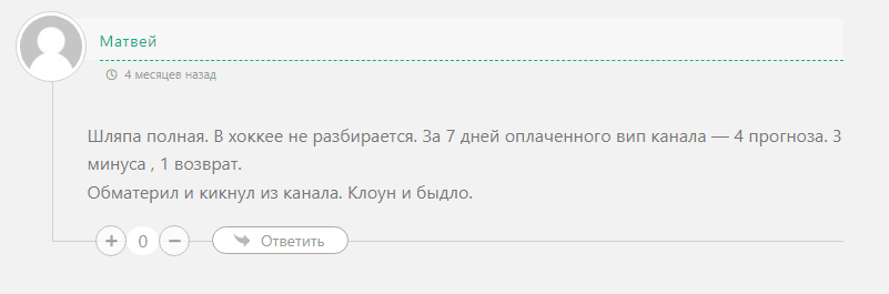 Владелец канала закрыл комментарии, что лишает пользователей возможности высказать свое мнение о проекте. Все комментарии на канале, как правило, положительные, что может свидетельствовать о попытках создать ложное впечатление о высоком качестве работы. Однако на сторонних ресурсах можно найти негативные отзывы от пользователей, которые потеряли деньги, следуя прогнозам этого каппера.