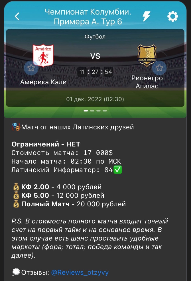 - Ссылка на дополнительный Telegram-канал с отзывами клиентов о каппере Дождь Бенина. Отзывы предназначены исключительно для внутреннего использования проектом, их копирование и распространение запрещены.