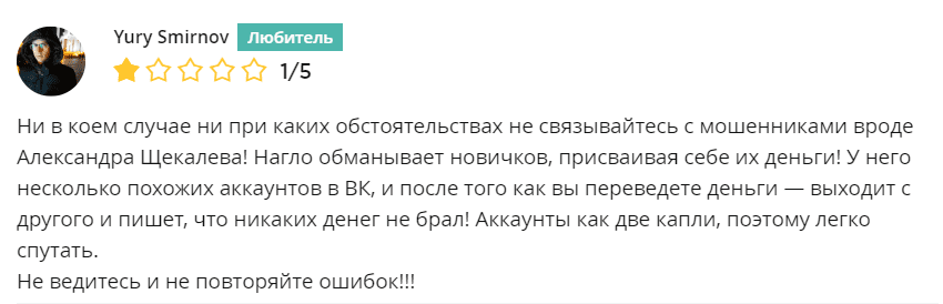 Перед нами типичный каппер-любитель, который вводит людей в заблуждение. Мы категорически не советуем доверять прогнозам Money Bear — Александр Щекалев выглядит как мошенник, и лучше искать более честные альтернативы.