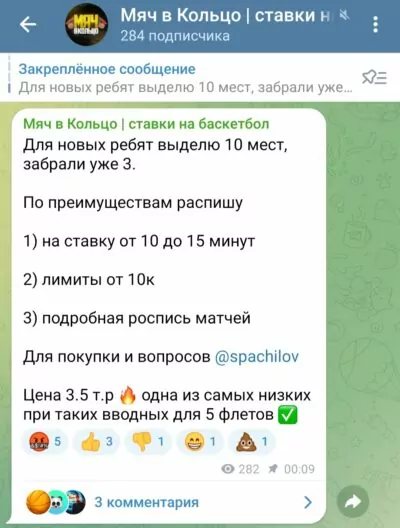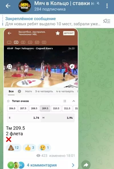 Мяч в Кольцо Чат — Телеграм-канал, ориентированный на ставки на баскетбол. Автор заявляет о значительной прибыли и продвигает свою ВИП-группу, но насколько эти заявления правдивы? Мы решили разобраться, действительно ли можно заработать на этом канале.