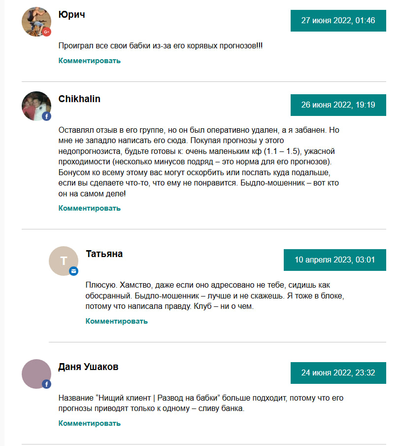 Отзывы о «Нищем каппере» появляются регулярно, и большинство из них отрицательные. Положительные комментарии, скорее всего, куплены им самим – станет ли честный специалист тратиться на фальшивую похвалу?