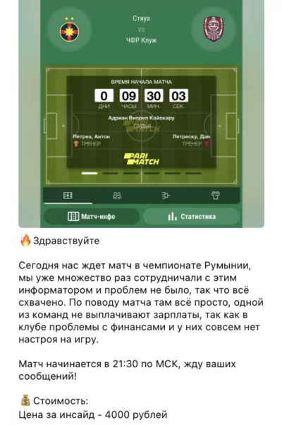 Инсайдерская информация — это данные, недоступные широкой аудитории, которые могут повлиять на исход матча. Как правило, они поступают от: