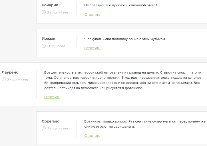 - Ставки не проходят верификацию, что наводит на мысль, что каппер может не играть сам;