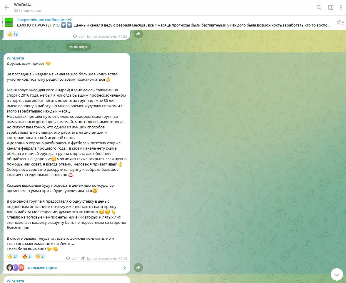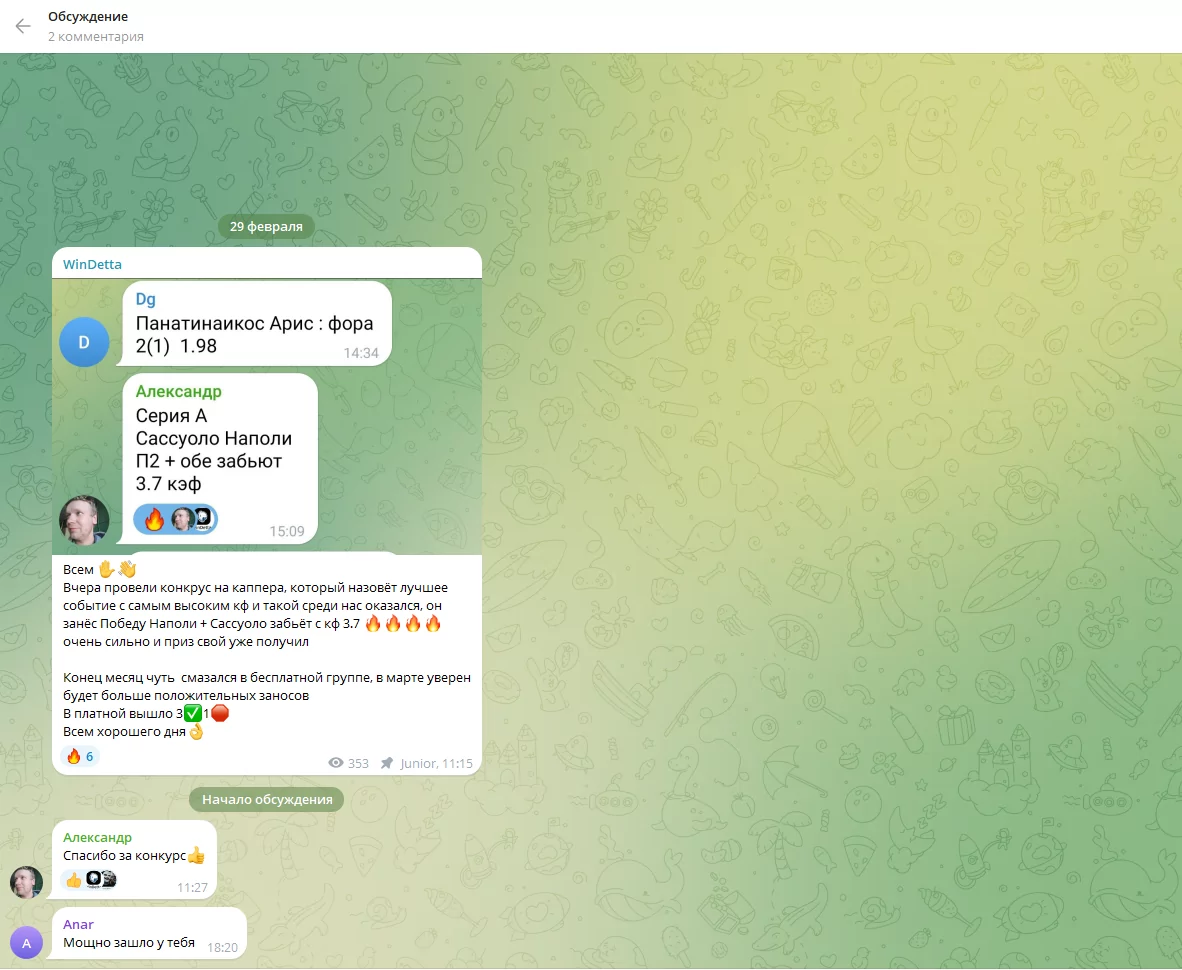 - В комментариях на канале можно найти обсуждения прогнозов, но они не дают четкого представления о надежности каппера.